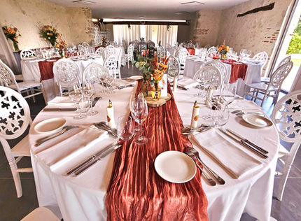 Le Domaine sur 3 hectares comprend un parking, une cuisine professionnelle, un magnifique préau de 200 M2 pour les vins d'honneur avec chambre froide, d'une salle de réception avec chaises design blanches et murs de pierres apparentes, de 4 appartements gîtes tous équipés d'une cuisine, salon, terrasse de 18 couchages.
